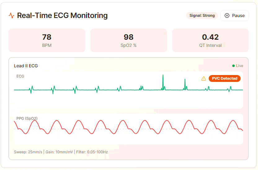 Our unique platform addresses a critical market gap by combining ECG and PPG analysis—a capability no other UK competitor offers. Get early access to the innovation that bridges the gap between consumer wearables and professional cardiology, positioning you at the forefront of the MedTech revolution.